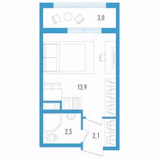 Студия от 18,1 м²