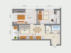Продаётся 2-комнатная квартира в строящемся доме (Корпус 1.3), срок сдачи: II-кв. 2026, общей площадью 64.43 кв.м., на 8 этаже.