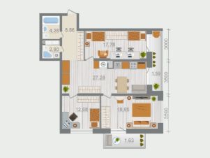 Продаётся 3-комнатная квартира в строящемся доме (Корпус 1.2), срок сдачи: II-кв. 2026, общей площадью 95.95 кв.м., на 5 этаже.