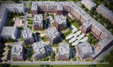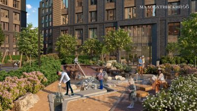 На территории "Малоохтинского, 68" расположены детские площадки, тренажеры для спортивных занятий и игр, зоны для спокойного отдыха. Жилые секции асимметрично расположены на территории и окружены оазисами зелени.