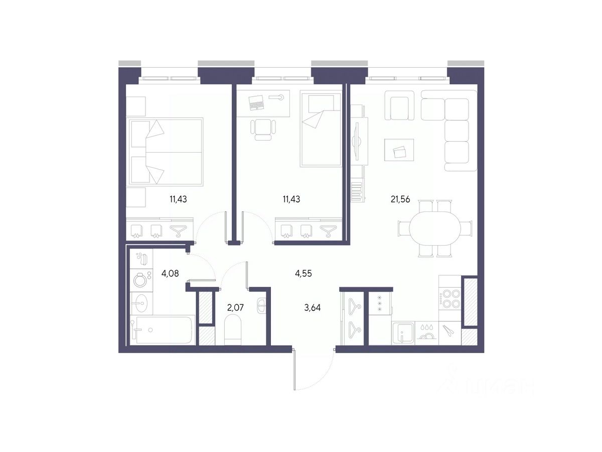 Продается двухкомнатная квартира с предчистовой отделкой в ЖК "Черная Речка, 41" на 7 этаже. Общая площадь: 58.76 кв.м., жилая: 22.86 кв.м., площадь просторной кухни-столовой: 21.56 кв.м. Комнаты изолированные, все окна выходят на одну сторону. В квартире один раздельный санузел. Высота потолков 3.0 м.