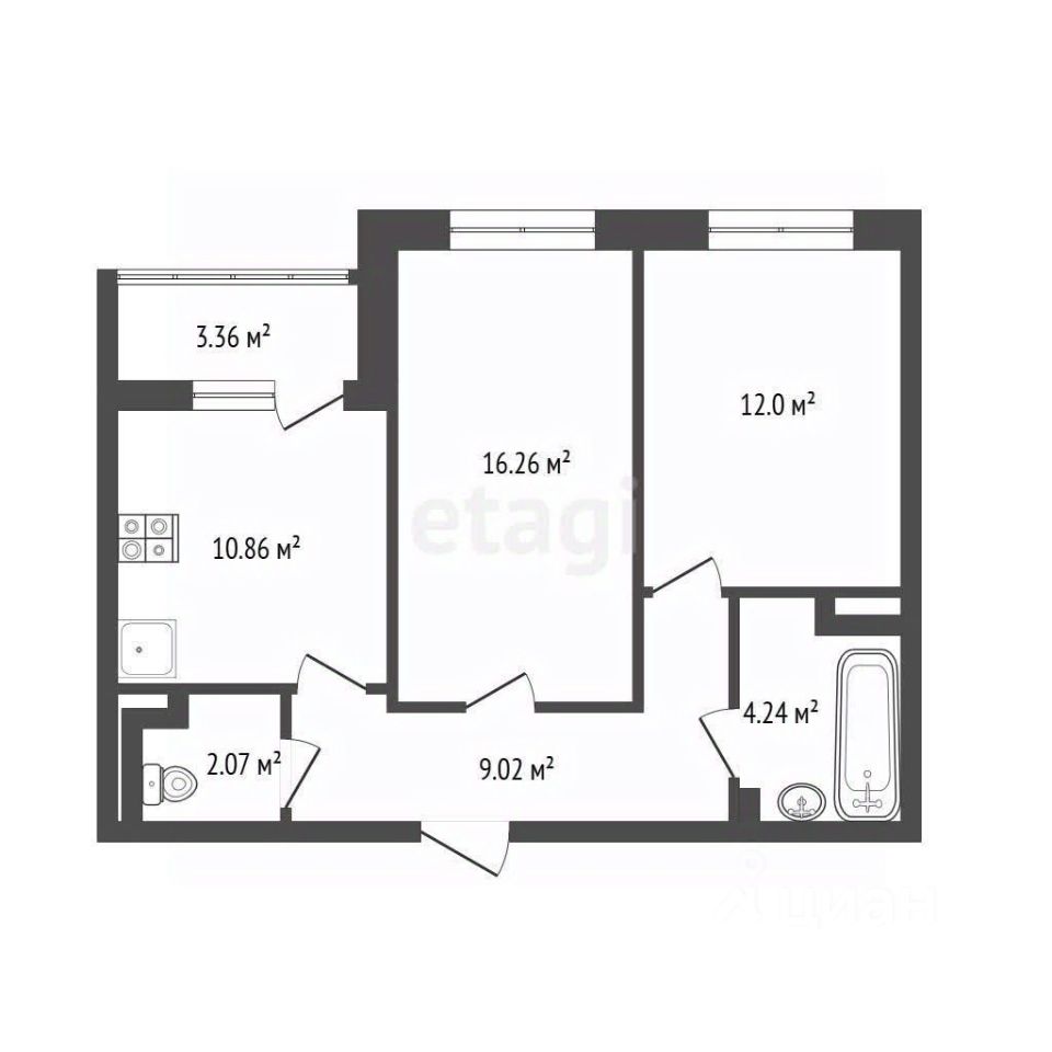 Планировка предусматривает просторную кухню, что создает комфортные условия для проживания.