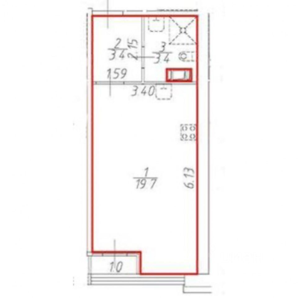 Жилая комната большая, 20 м.кв. Здесь можно выделить место для кухни, организовать зону отдыха, разместить рабочий стол и систему хранения. Есть внутренняя лоджия. Комнату можно увеличить на 1 м.кв., если демонтировать некапитальные конструкции.
