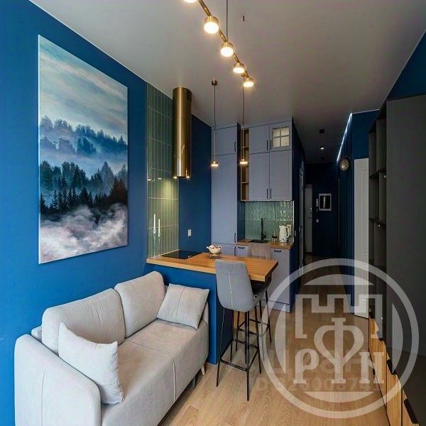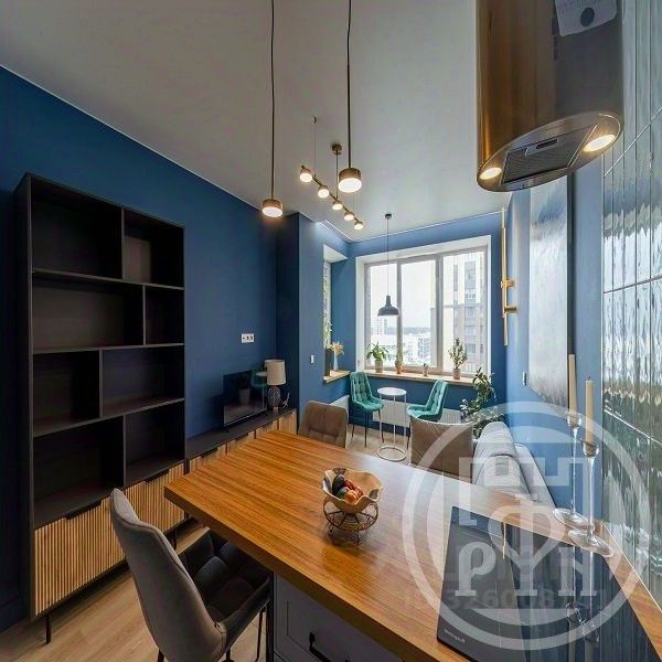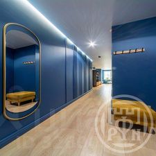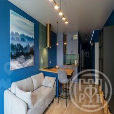 Квартира с дизайнерским ремонтом, всё продумано до мелочей. Отделка выполнена из высококачественных материалов. Натяжные матовые потолки, стильные обои, ламинат. Кроме основных источников света во всей квартире много дополнительного стильного освещения: бра, ленточная подсветка, точечные лампы.