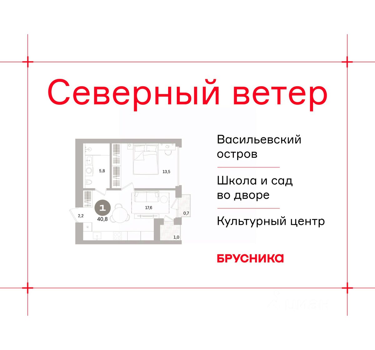 Продается однокомнатная квартира от застройщика с предчистовой отделкой в ЖК "Северный ветер" на 11 этаже. Общая площадь: 40.82 кв.м., жилая: 13.5 кв.м., площадь просторной кухни-столовой: 17.6 кв.м. Все окна выходят на одну сторону. В квартире один балкон и одна лоджия, один совмещенный санузел. Высота потолков 3.1 м.