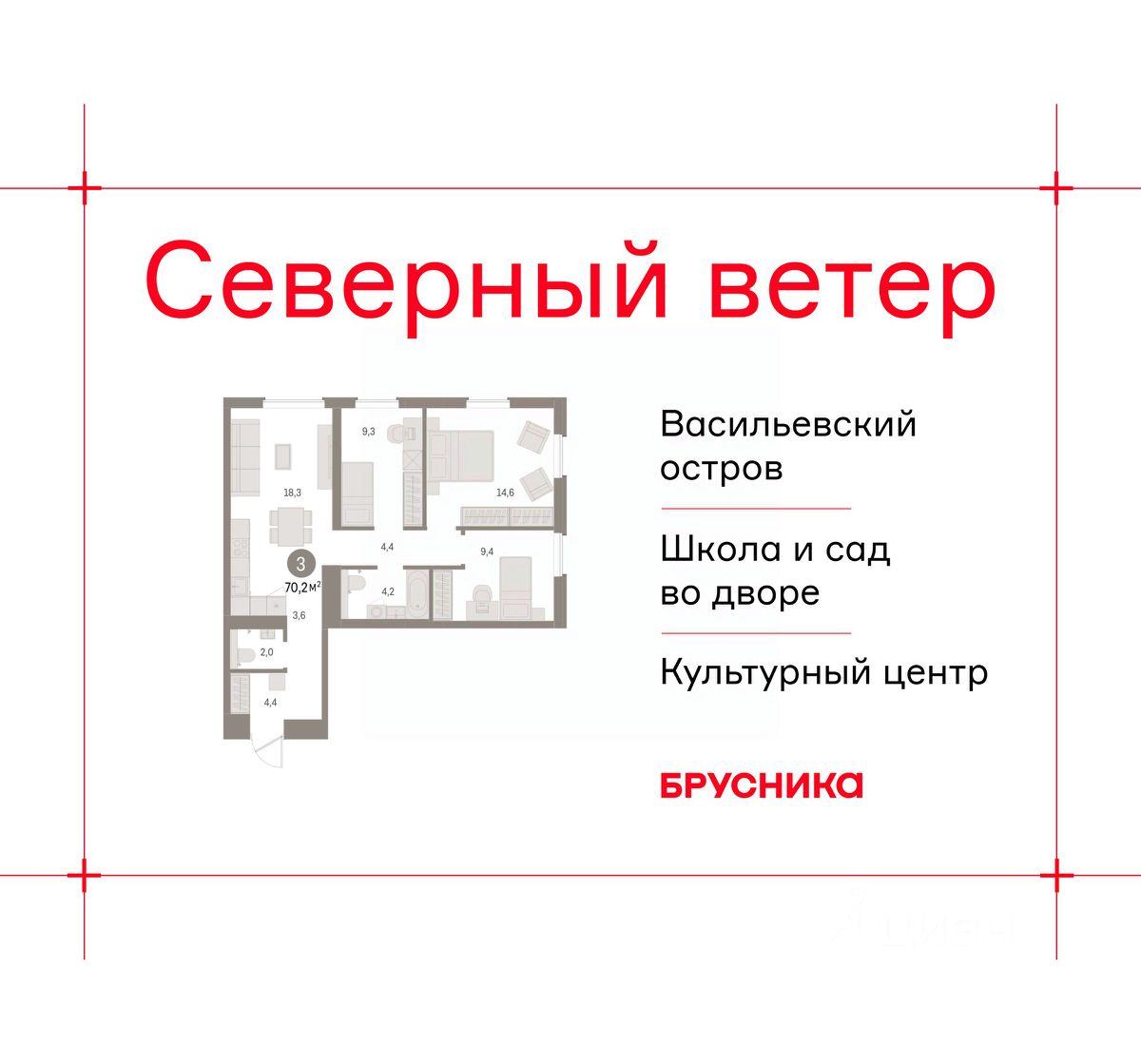Продается трехкомнатная квартира от застройщика с предчистовой отделкой в ЖК "Северный ветер" на 2 этаже. Общая площадь: 70.18 кв.м., жилая: 33.3 кв.м., площадь просторной кухни-столовой: 18.3 кв.м. Квартира угловая, окна oбecпeчивaют paвнoмepнoe ocвeщeниe в тeчeниe дня. В квартире один совмещенный и один раздельный санузел. Высота потолков 2.98 м.