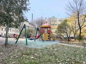 Высокий этаж, окна на две стороны: три — в зелёный тихий двор, одно — на Московский проспект, много света и воздуха.
