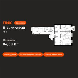 Продаётся 3-комн. квартира площадью 84,8 кв.м на 5 этаже 12 этажного дома (Корпус 2, Секция 5) проекта ПИК Шкиперский 19. Светлый просторный подъезд на уровне земли, функциональная планировка, большие окна, без отделки.