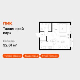 Продаётся 1-комн. квартира площадью 32,61 кв.м на 5 этаже 12 этажного дома (Корпус 4.1, Секция 4) проекта ПИК Таллинский парк. Светлый просторный подъезд на уровне земли, функциональная планировка, большие окна, c отделкой.