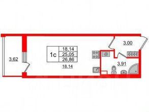 Уютная студия 24,3 м/кв + лoджия 3.76 м/квО квapтирe: