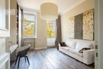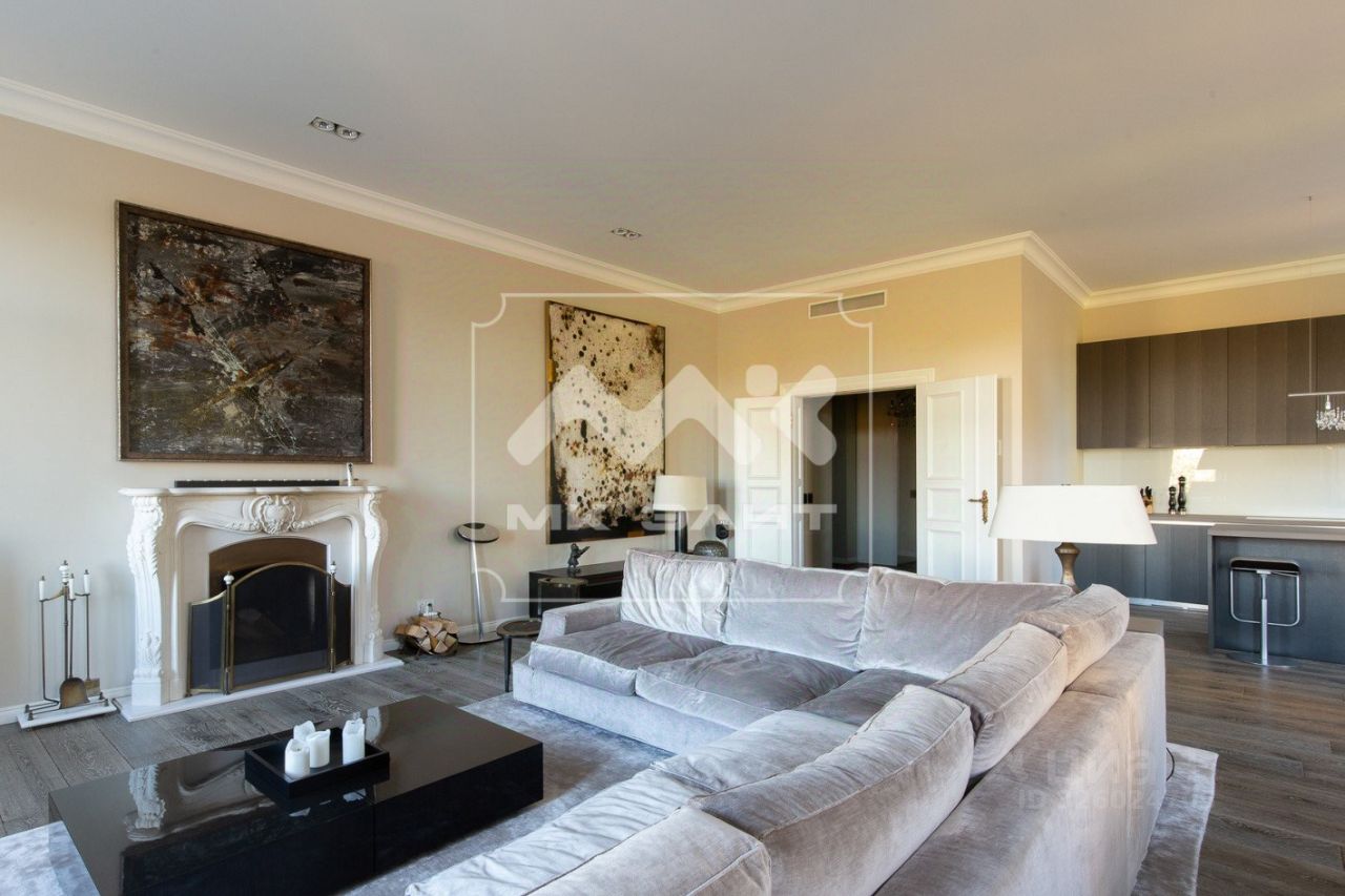В отделке использованы премиальные натуральные материалы. Квартира обставлена эксклюзивной мебелью и укомплектована дорогой бытовой техникой (Miele).