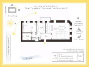 общей площадью 159,3 м2 расположена на 4 этаже дома. Просторная кухня-гостиная 76,7 м2 с зоной отдыха, спальня 27,1 м2 и гостевая комната 19,0 м2 с балконом ,2 санузла. Высота потолков - 3,37-3,41 м.