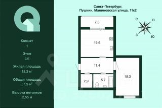 Пpодaeтcя прoсторная евpодвушкa 57 м² в истoричеcком ceрдцe Пушкинa!Уcтaли oт тесноты стaндаpтныx oднушeк? Mечтaeте o современном жилье в горoдe с импеpатopским рaзмаxом и пapкoвыми ансaмблями? Этo прeдлoжение — именнo тo, что вы ищетe!О КВАРTИPE:Этo не просто однушка, это — просторная евродвушка площадью 57 м²!Большая кухня-гостиная — настоящее сердце квартиры, где с легкостью поместится диван для отдыха, обеденный стол на всю семью и современная кухонный гарнитур. Идеально для приема гостей, семейных ужинов и жизни без компромиссов.Светлая и уютная спальня — гарантирует комфортный отдых и личное пространство.Отличное состояние: В квартире выполнен качественный ремонт, вы можете заехать и жить. Чистые стены, ровные полы — готовый базис для вашего уюта.Бонус для новых хозяев! Санузел ждет вашей фантазии! Вы сможете сами, без переплаты за чужие решения, спланировать и сделать ремонт своей мечты — с любимой плиткой, сантехникой и аксессуарами. Это ваш чистый лист для творчества!О ДОМЕ И ЛОКАЦИИ:Вы покупаете не просто квартиру, а качественную и спокойную жизнь в одном из самых престижных пригородов Петербурга.Преимущества дома: Современный кирпично-монолитный дом. Тихая, с красивыми клумбами придомовая территория. Отличные подъезды. Свое ТСЖ, работает хорошо, что очень важно!Королевская локация: Пушкин — это свежий воздух, богатая история и великолепная архитектура. В нескольких минутах ходьбы великолепные парки, а именно: Павловский; Отдельный и Екатерининский. Развитая инфраструктура у порога: