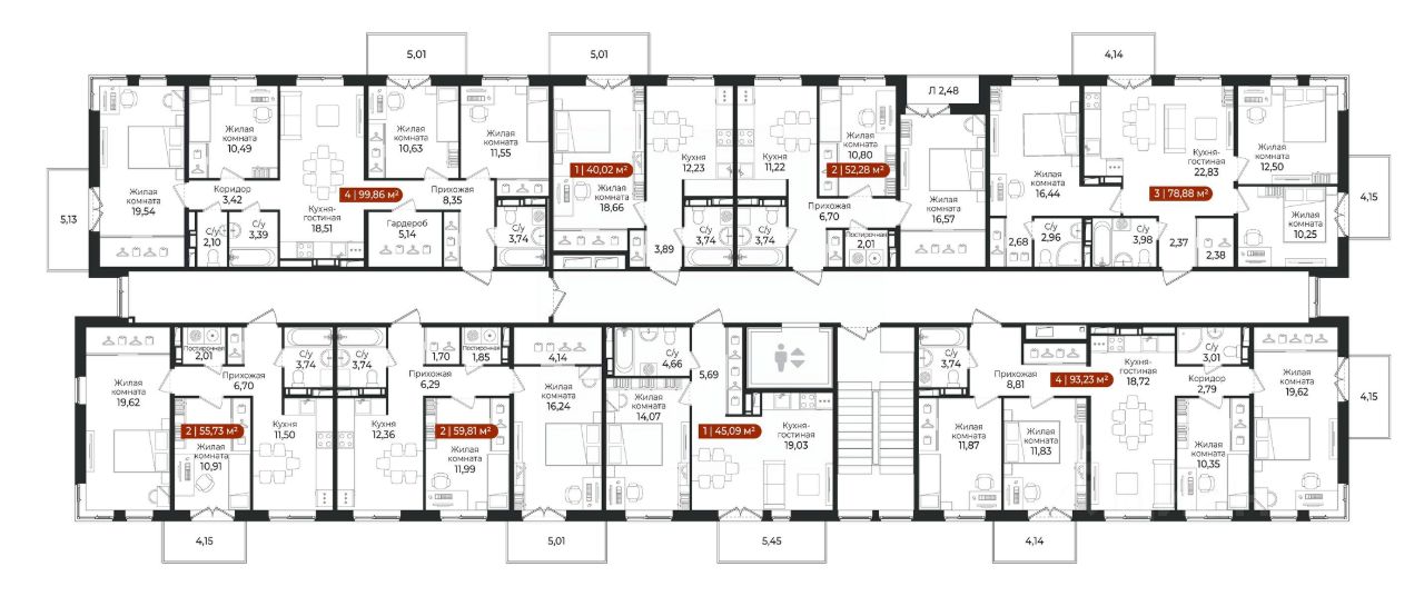 Выбирайте уютную однокомнатную или просторную четырехкомнатную квартиру, с площадью кухни до 23 м2 с гардеробной или постирочной.