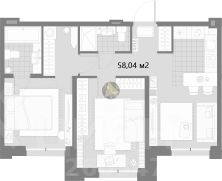 Квартира находится на 8 этаже в 10-этажном доме. Общая площадь квартиры 58,04 м².