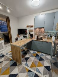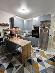 В подарок новому собственнику остается кухонный гарнитур со встроенной техникой.