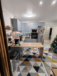 В квартире выполнен качественный ремонт из современных материалов, установлены дополнительные фильтры и бойлер для горячей воды. Итальянский ламинат, широкоформатная плитка, инсталляция, встроенная бытовая техника Electrolux и многое другое.....квартира сделана качественно и для себя.