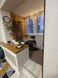 Утепленный балкон, с тепло и шумоизоляцией, так же на балконе сделано отдельное место для хранение вещей.