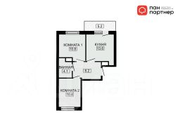 Две комнаты 10,6 и 10,4 м2 правильной формы.