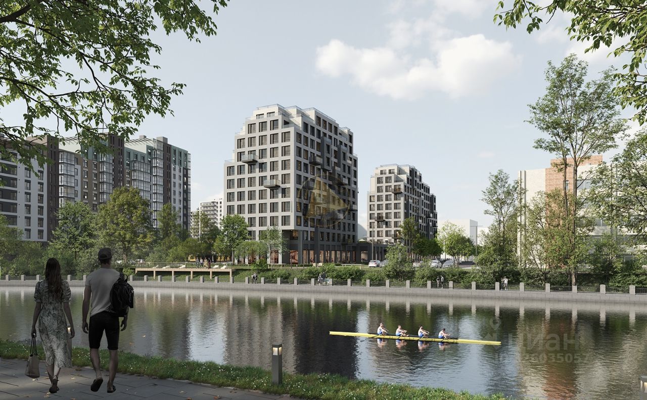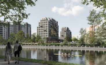 2. Территория жилого комплекса благоустроена: выполнено ландшафтное озеленение, спроектированы общественное пространство у реки, пешеходные и велодорожки, лаунж зоны на набережной, детские площадки и спортивные зоны. Для жителей предусмотрены места хранения колясок, велосипедов и самокатов.