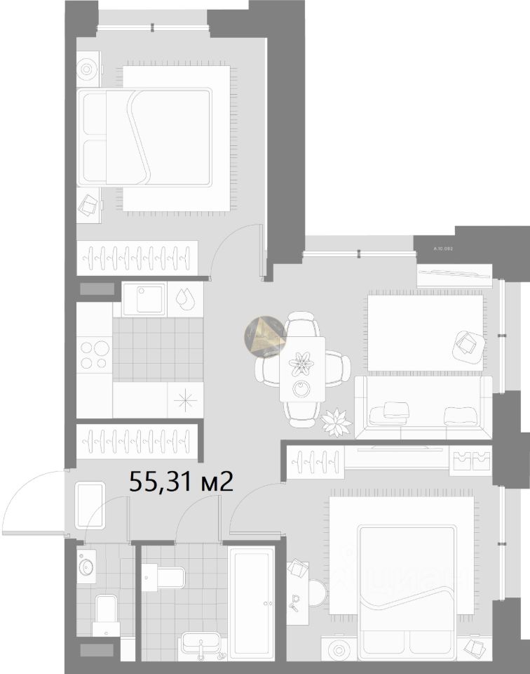 Квартира находится на 8 этаже в 11-этажном доме. Общая площадь квартиры 55,31 м².