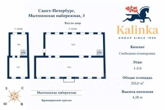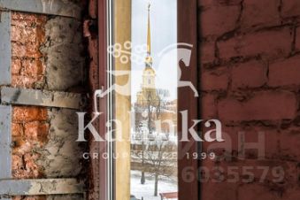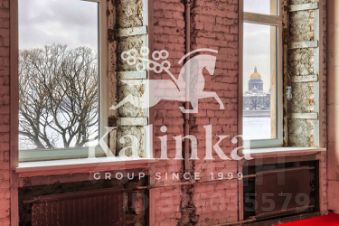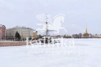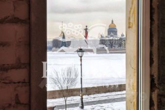 Двухуровневое пространство площадью 355 м² с потолками 4,3 метра и панорамными видами на Неву, Эрмитаж, стрелку Васильевского острова и Петропавловскую крепость.