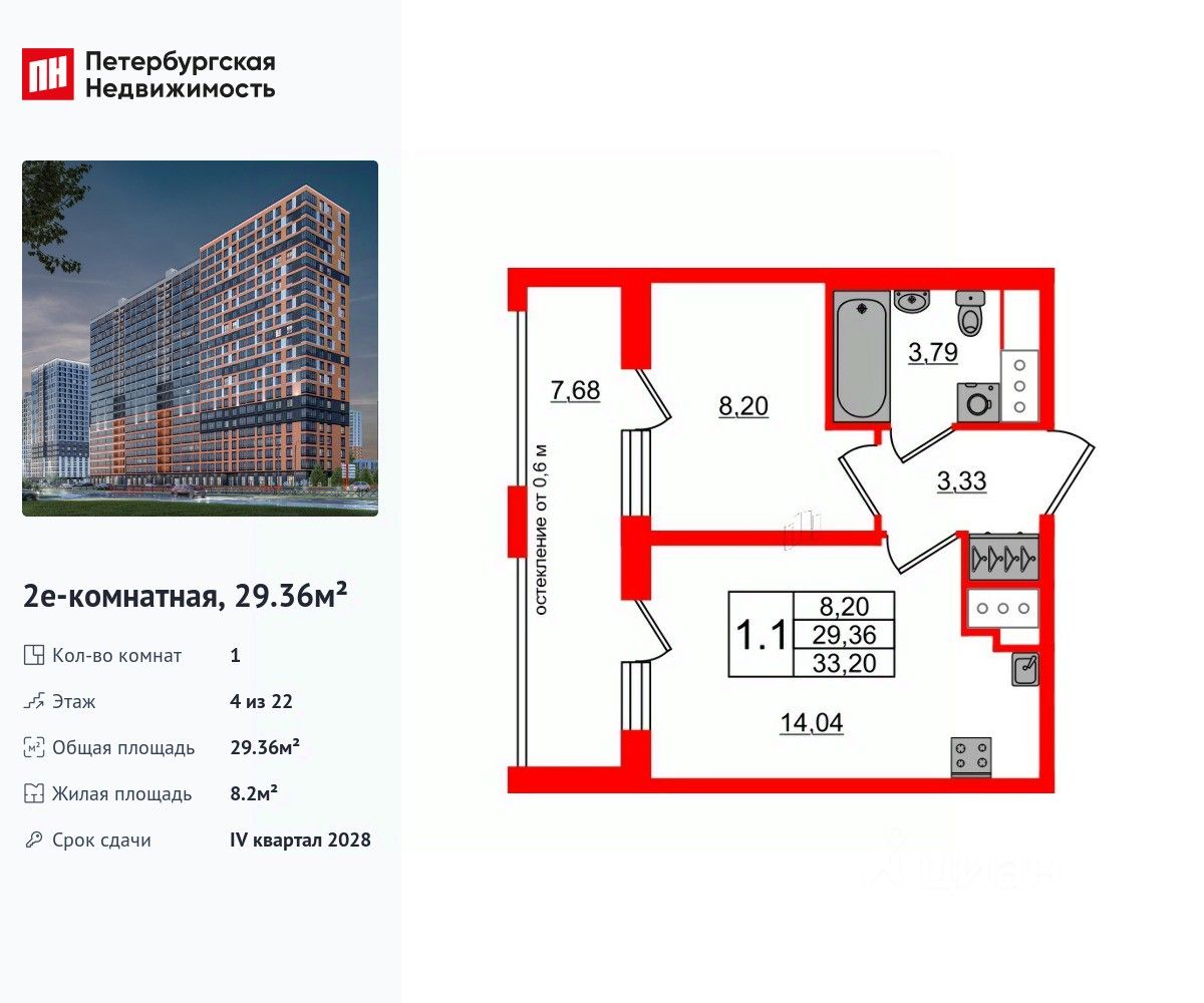 Продается уютная 1-комнатная квартира в жилом комплексе "Город звезд" в новом городе на правом берегу Невы. До метро можно добраться на транспорте всего за 13 минут. Удобная, классическая, функциональная европланировка, большая кухня-гостиная 14.04 м², вместительная прихожая 3.33 м². Общая площадь квартиры - 29.36 м², жилая 8.2 м², высота потолка 2.77 м. Квартира продается с отделкой "NORD LINE SILVER". Что особенного в ЖК "Город звезд"? • Инновационный Лицей Setl с оригинальной архитектурной концепцией и уникальной образовательной средой • Невский лесопарк под окнами - всегда свежий воздух и полноценный отдых на природе • Четыре тематические площади отдыха с разнообразным благоустройством • Аллея Звёзд - променад протяженностью 5 км с ландшафтным озеленением, зонами отдыха и велодорожкой • Выход на набережную реки Утки, где можно порыбачить или взять напрокат лодку • Единая входная группа с ресепшен и подземный паркинг