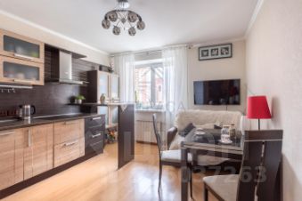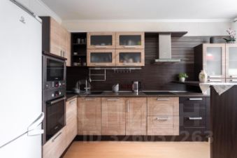 кухня 14,8 кв.м.: куxонная мебель, варочная панель, холодильник, духовой шкаф, посудомойка, стулья, диван, стол;