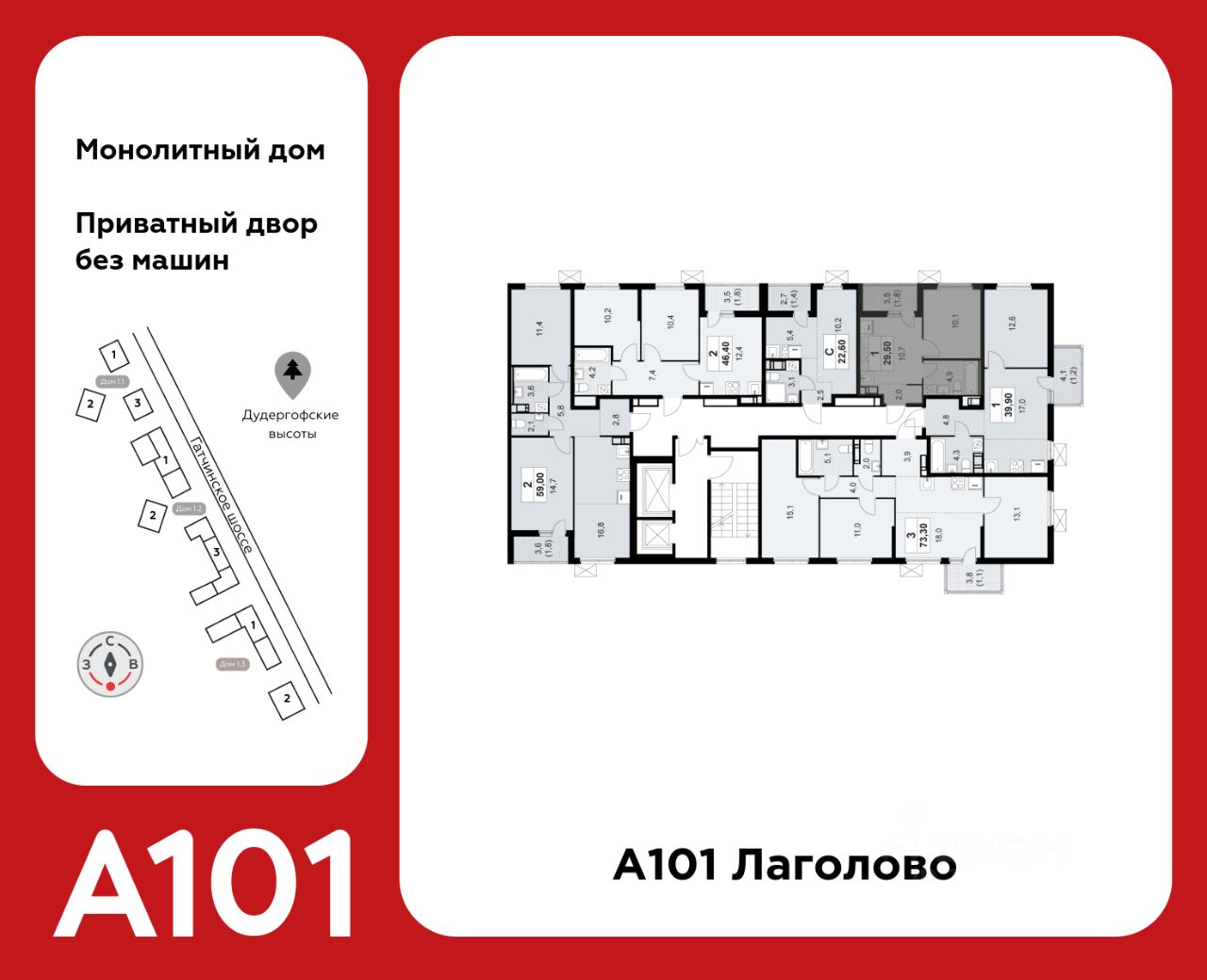 "А101 Лаголово" - современный город у подножия знаменитых Дудерговских высот, в объятиях чистейших озёр и зелёных живописных массивов, наполненный всем необходимым для счастливой жизни.