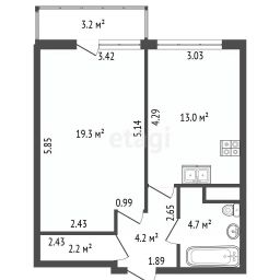 Продаётся просторная однокомнатная квартира площадью 43.4 кв.м.