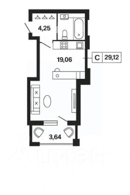 Предлагаем просторную студию 28,2 м² в доме премиум-класса.