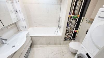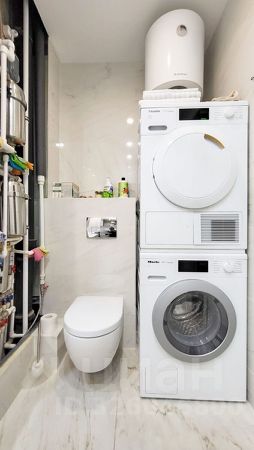 В ванной комнате установлена современная система очистки воды, тропический душ, инсталляция для унитаза, водонагреватель Ariston, стиральная и сушильная машины фирмы Miele.