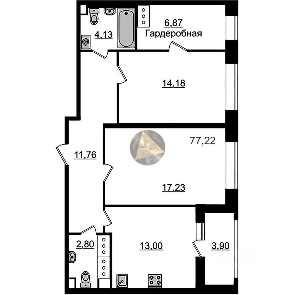 - Общая площадь квартиры 77.22 м2