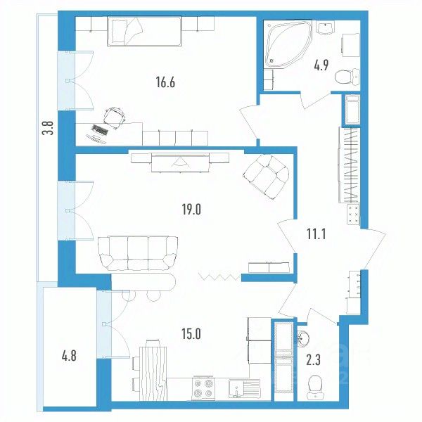 Продаётся 2-комнатная квартира в сданном доме (Головнина, 3к1), срок сдачи: II-кв. 2023, общей площадью 72.4 кв.м., на 9 этаже.