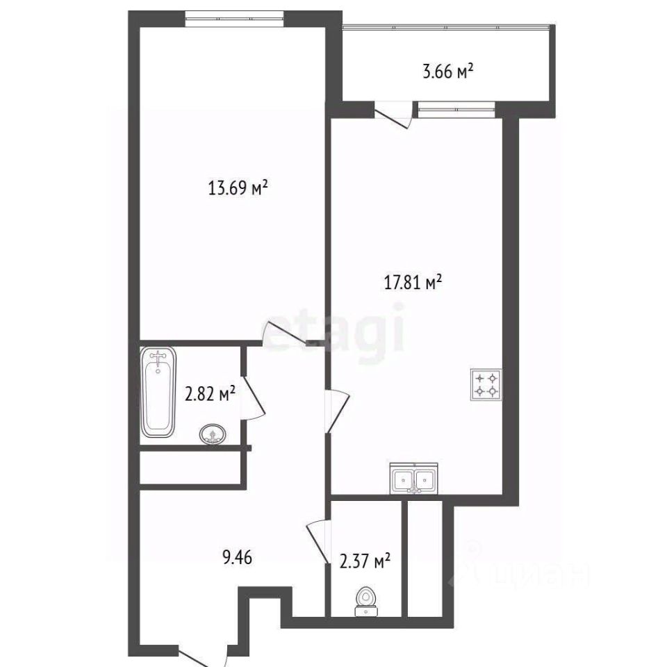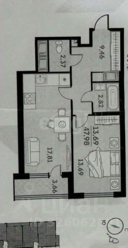• Площадь: 45.7 м²