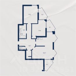 Квартира площадью 122.9 м2 с тремя просторными лоджиями, что является особенностью данной квартиры. В квартире организовано пространство для объединения семьи - кухня-столовая и гостиная общей площадью 50.7 м2. Также в квартире две соразмерные спальни площадью 17.6 и 17.2 м2, два санузла, гардеробная и функциональная прихожая.