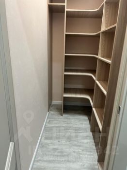 Большим плюсом данной квартиры является гардеробная : удобная и функциональная ,оборудована всеми необходимыми полками ,ящиками для хранения.