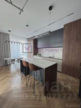 Главная зона — кухня-гостиная 42,8 м²: Пространство для жизни и приема гостей. Профессиональная кухня-остров с керамической столешницей, барной стойкой и обеденной зоной у окна. Уютная гостиная с диваном на большую компанию и рабочей зоной. И главное — захватывающие виды из каждого окна.