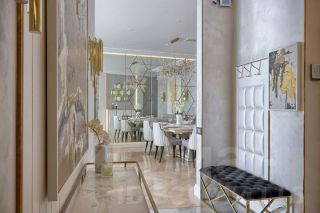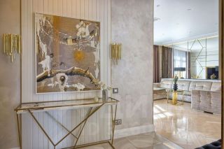 Ремонт выполнен по дизайн-проекту с использованием дорогих материалов и техники (Swarovski, Kuppersbusch).