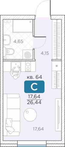 Общая площадь26,44 м²