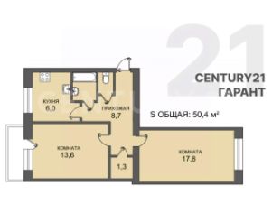 Просторные 50,4 м² с двумя отдельными комнатами — место для личного пространства каждого.