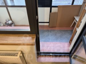 Балкон 4,8 метра, очень просторный, его мы отштукатурили и окрасили, выложили мозайку и керамогранит на пол, установили шкаф для дополнительного хранения. Вид с 10 этажа открывается на двор с ландшафтом, в дали виднеются депо и ботанический сад. Нет соседних окон, удачное расположение.