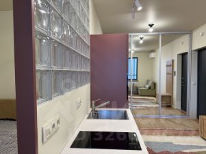 Просторная студия, где предусмотрены зоны спальни, кухни-столовой, прихожей и большой смежный санузел. На полу мы постелили инженерную доску, подоконник установили из массива дуба. Дорогая встроенная мебель и кухня от компании Мария. Кухня оснащена встроенным холодильником, микроволновой печью, посудомоечной машиной и варочный панелью. Удобная выдвижная сушка посуды, доводчики и качественная сантехника. Увеличивает пространство зеркальный очень вместительный шкаф купе до потолка от Мария. Санузел с просторным душем на подиуме, выложена мозаика, красивая напольная раковина, трубчатый полотенцесушитель и шкафчик для хранения с подсветкой. Дизайнерские импортные светильники дополнили проект. В зоне спальни установлена двуспальная кровать с ящиком для хранения, большой комод из массива. В зоне кухни раскладной диванчик.
