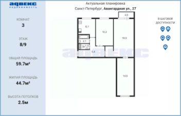 За 10-15 минут автобусом/троллейбусом можно доехать до станции метро Проспект Ветеранов. Остановки транспорта рядом с домом.