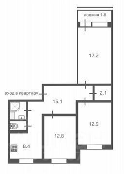 - изолированные комнаты 17.2, 12.9 и 12.8 кв. М.