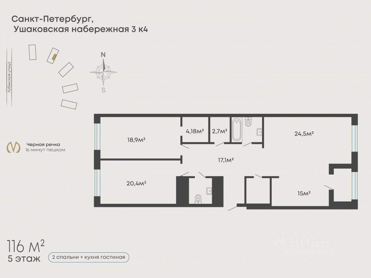 Идеальный вид и тишина: Квартира двусторонняя, окна выходят во двор. Вы будете наслаждаться тишиной, зеленью и боковым видом на акваторию Черной речки. Прямо из окна видна детская площадка — всегда можно присмотреть за играющими детьми. На площадке всего 2 квартиры