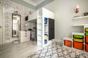 Рядом с гостиной расположен кабинет, который с легкостью может быть трансформирован в гостевую спальню с собственным санузлом, что добавляет квартире универсальности.
