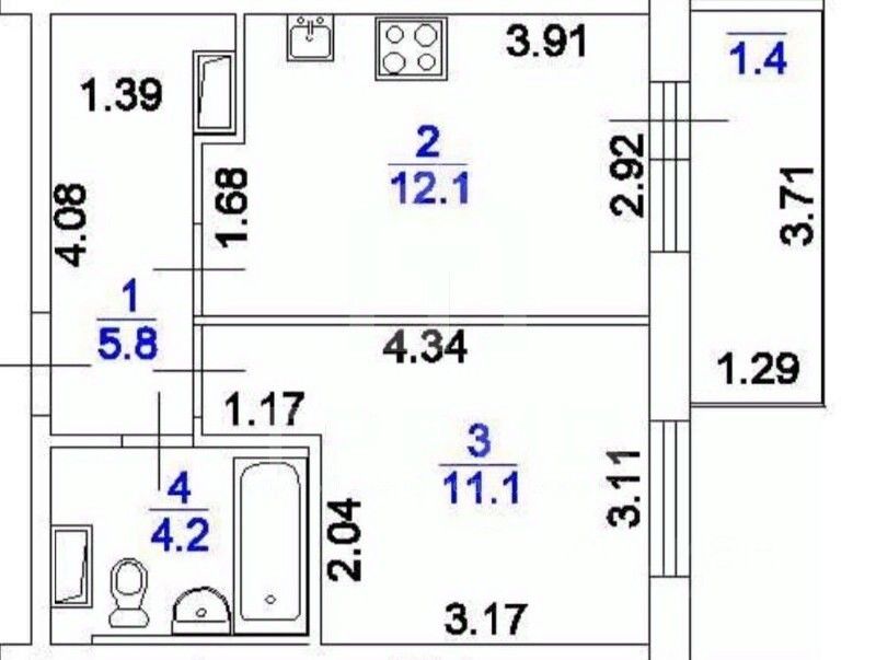 Площадь и планировка: общая площадь квартиры — 33,2 кв. м, из которых 11,2 кв. м занимает жилая площадь, а 12,2 кв. м — кухня. Высота потолков 2,7 м создаёт ощущение простора.
