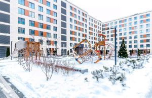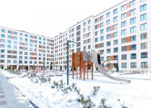 На территории комплекса предусмотрены зона отдыха и детская площадка, а выход к набережной организован через террасу-солярий — прекрасная роскошь для жильцов дома.