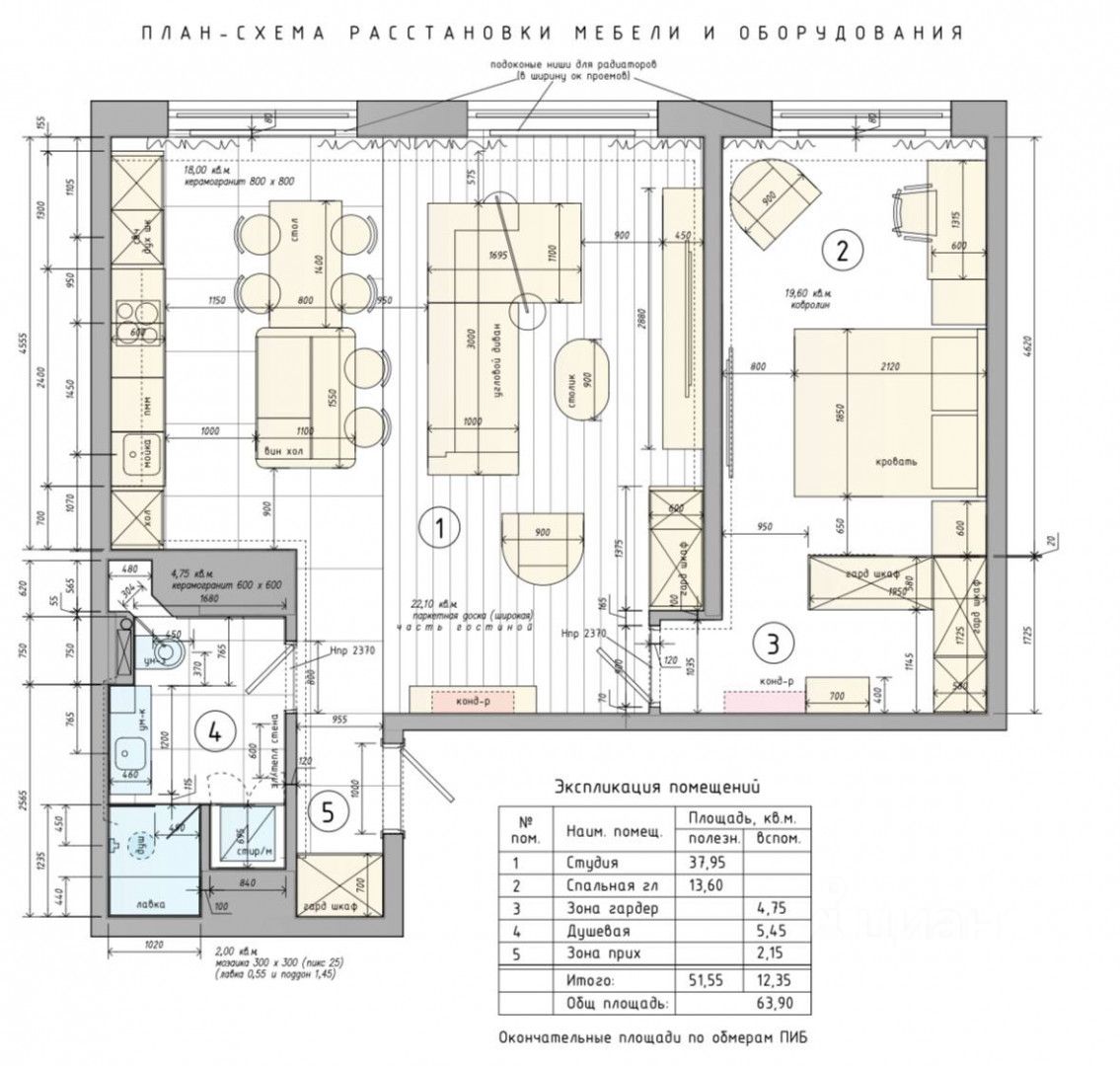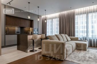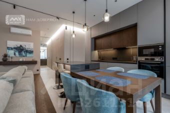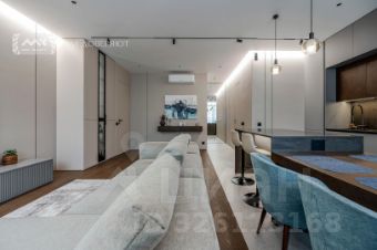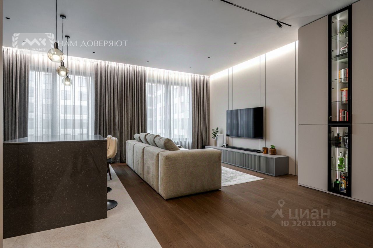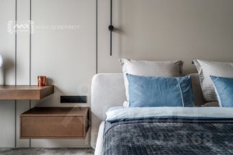 В квартире выполнен продуманный до мелочей ремонт с использованием премиальных материалов: натуральный паркет, испанский керамогранит, кварцевые столешницы. Установлена качественная техника Bosh и Miele, в спальне — электрокарниз для максимального удобства. Квартира оснащена системой "умный дом", управляемой через смартфон и Яндекс станцию. Планировка продумана так, чтобы вы сразу чувствовали простор и уют. Вас встречает светлая кухня-гостиная с двумя большими окнами. В спальню можно попасть через удобную гардеробную — это добавляет приватности и комфорта. В квартире так же качественно продумана система хранения. Вся отделка выдержана в едином стиле: благородные природные оттенки, натуральные материалы, мебель на заказ из шпона дуба и продуманное по зонам освещение с разными сценариями — здесь каждая деталь работает на ощущение цельного, дорогого интерьера.